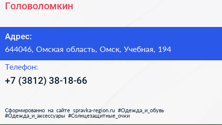 Головоломкин по адресу 644046, Омская область, Омск, Учебная, 194 в дальнейшем Организация, размещена в следующих категориях: