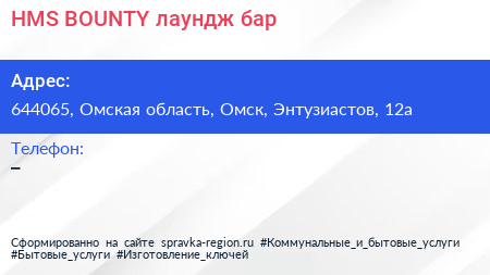 HMS BOUNTY, лаундж-бар по адресу 644065, Омская область, Омск, Энтузиастов, 12а в дальнейшем Организация, размещена в следующих категориях: