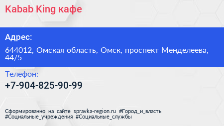 Kabab King, кафе по адресу 644012, Омская область, Омск, проспект Менделеева, 44/5 в дальнейшем Организация, размещена в следующих категориях: