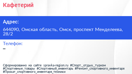 Кафетерий по адресу 644090, Омская область, Омск, проспект Менделеева, 28/2 в дальнейшем Организация, размещена в следующих категориях:
