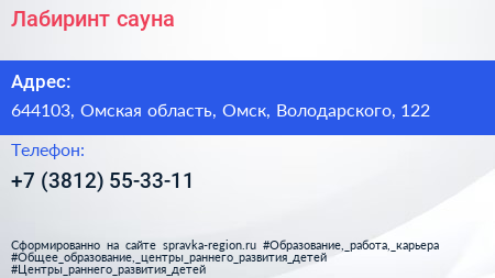 Лабиринт, сауна по адресу 644103, Омская область, Омск, Володарского, 122 в дальнейшем Организация, размещена в следующих категориях:
