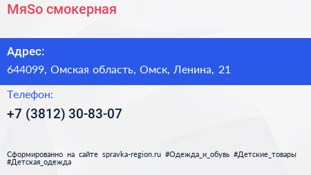 МяSo, смокерная по адресу 644099, Омская область, Омск, Ленина, 21 в дальнейшем Организация, размещена в следующих категориях: