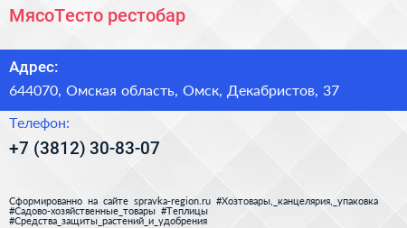 МясоТесто, рестобар по адресу 644070, Омская область, Омск, Декабристов, 37 в дальнейшем Организация, размещена в следующих категориях: