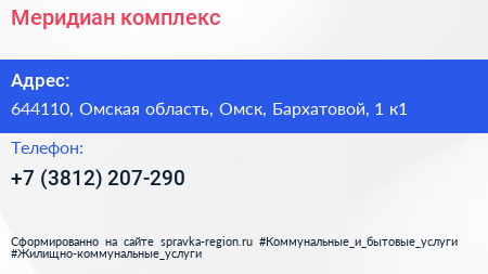 Меридиан, комплекс по адресу 644110, Омская область, Омск, Бархатовой, 1 к1 в дальнейшем Организация, размещена в следующих категориях: