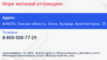 Море желаний, аттракцион по адресу 644074, Омская область, Омск, бульвар Архитекторов, 35 в дальнейшем Организация, размещена в следующих категориях: