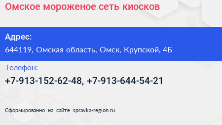 Омское мороженое, сеть киосков по адресу 644119, Омская область, Омск, Крупской, 4Б в дальнейшем Организация, размещена в следующих категориях: