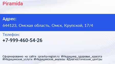 Piramida по адресу 644123, Омская область, Омск, Крупской, 17/4 в дальнейшем Организация, размещена в следующих категориях: