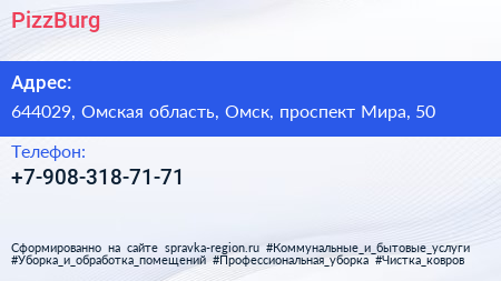 PizzBurg по адресу 644029, Омская область, Омск, проспект Мира, 50 в дальнейшем Организация, размещена в следующих категориях: