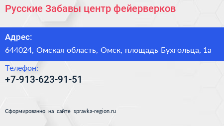 Русские Забавы, центр фейерверков по адресу 644024, Омская область, Омск, площадь Бухгольца, 1а в дальнейшем Организация, размещена в следующих категориях: