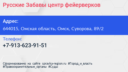 Русские Забавы, центр фейерверков по адресу 644015, Омская область, Омск, Суворова, 89/2 в дальнейшем Организация, размещена в следующих категориях: