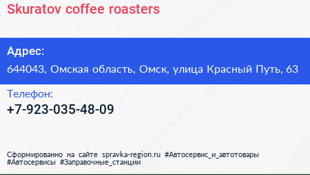 Skuratov, coffee roasters по адресу 644043, Омская область, Омск, улица Красный Путь, 63 в дальнейшем Организация, размещена в следующих категориях: