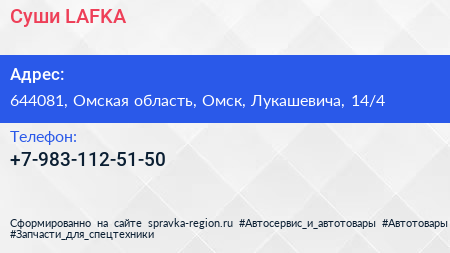 Суши LAFKA по адресу 644081, Омская область, Омск, Лукашевича, 14/4 в дальнейшем Организация, размещена в следующих категориях: