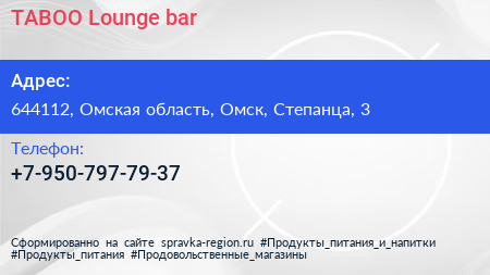 TABOO Lounge bar по адресу 644112, Омская область, Омск, Степанца, 3 в дальнейшем Организация, размещена в следующих категориях: