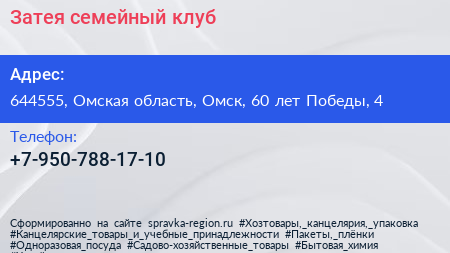 Затея, семейный клуб по адресу 644555, Омская область, Омск, 60 лет Победы, 4 в дальнейшем Организация, размещена в следующих категориях: