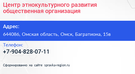 Центр этнокультурного развития, общественная организация по адресу 644086, Омская область, Омск, Багратиона, 15в в дальнейшем Организация, размещена в следующих категориях: