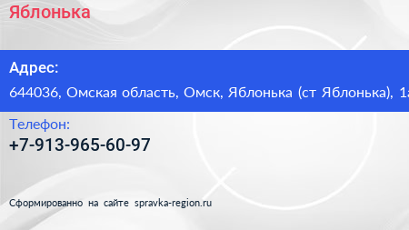 Яблонька по адресу 644036, Омская область, Омск, Яблонька (ст Яблонька), 1а в дальнейшем Организация, размещена в следующих категориях: