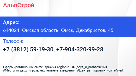 АльпСтрой по адресу 644024, Омская область, Омск, Декабристов, 45 в дальнейшем Организация, размещена в следующих категориях: