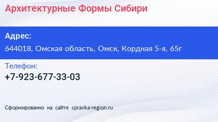 Архитектурные Формы Сибири по адресу 644018, Омская область, Омск, Кордная 5-я, 65г в дальнейшем Организация, размещена в следующих категориях: