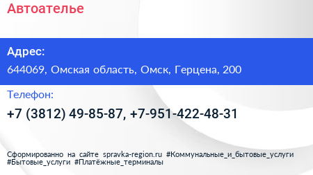 Автоателье по адресу 644069, Омская область, Омск, Герцена, 200 в дальнейшем Организация, размещена в следующих категориях: