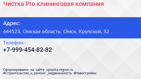 Чистка Pro, клининговая компания по адресу 644123, Омская область, Омск, Крупской, 52 в дальнейшем Организация, размещена в следующих категориях: