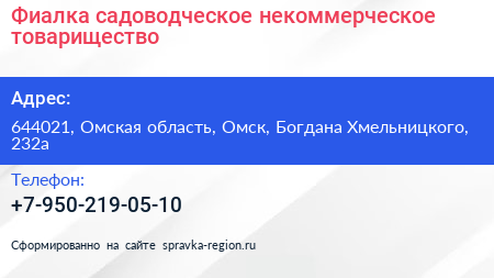 Фиалка, садоводческое некоммерческое товарищество по адресу 644021, Омская область, Омск, Богдана Хмельницкого, 232а в дальнейшем Организация, размещена в следующих категориях: