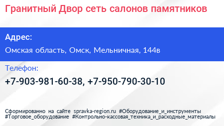 Гранитный Двор, сеть салонов памятников по адресу Омская область, Омск, Мельничная, 144в в дальнейшем Организация, размещена в следующих категориях: