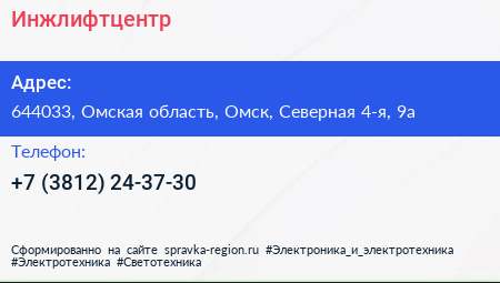 Инжлифтцентр по адресу 644033, Омская область, Омск, Северная 4-я, 9а в дальнейшем Организация, размещена в следующих категориях: