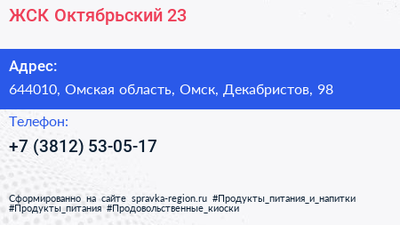 ЖСК Октябрьский-23 по адресу 644010, Омская область, Омск, Декабристов, 98 в дальнейшем Организация, размещена в следующих категориях: