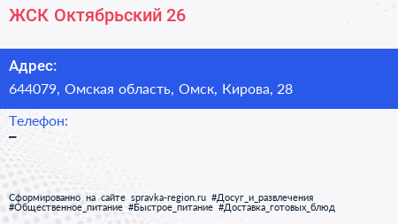 ЖСК Октябрьский-26 по адресу 644079, Омская область, Омск, Кирова, 28 в дальнейшем Организация, размещена в следующих категориях: