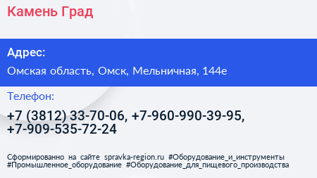 Камень-Град по адресу Омская область, Омск, Мельничная, 144е в дальнейшем Организация, размещена в следующих категориях: