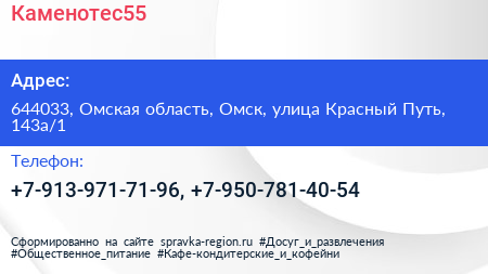 Каменотес55 по адресу 644033, Омская область, Омск, улица Красный Путь, 143а/1 в дальнейшем Организация, размещена в следующих категориях: