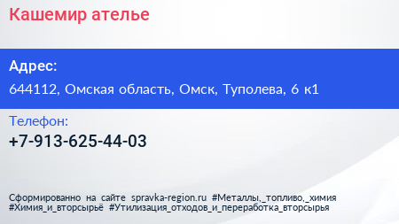Кашемир, ателье по адресу 644112, Омская область, Омск, Туполева, 6 к1 в дальнейшем Организация, размещена в следующих категориях: