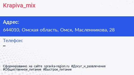 Krapiva_mix по адресу 644010, Омская область, Омск, Масленникова, 28 в дальнейшем Организация, размещена в следующих категориях: