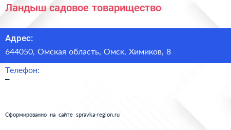 Ландыш, садовое товарищество по адресу 644050, Омская область, Омск, Химиков, 8 в дальнейшем Организация, размещена в следующих категориях: