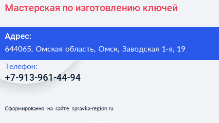 Мастерская по изготовлению ключей по адресу 644065, Омская область, Омск, Заводская 1-я, 19 в дальнейшем Организация, размещена в следующих категориях: