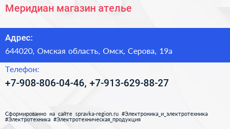 Меридиан, магазин-ателье по адресу 644020, Омская область, Омск, Серова, 19а в дальнейшем Организация, размещена в следующих категориях: