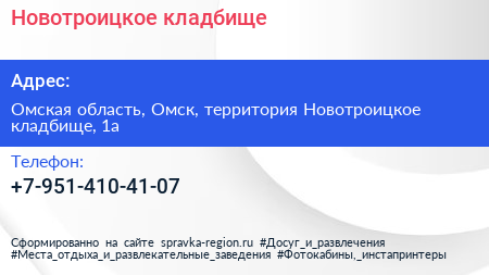 Новотроицкое кладбище по адресу Омская область, Омск, территория Новотроицкое кладбище, 1а в дальнейшем Организация, размещена в следующих категориях: