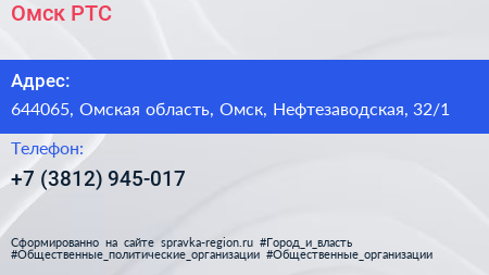 Омск РТС по адресу 644065, Омская область, Омск, Нефтезаводская, 32/1 в дальнейшем Организация, размещена в следующих категориях:
