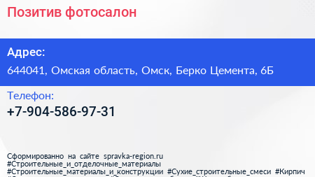 Позитив, фотосалон по адресу 644041, Омская область, Омск, Берко Цемента, 6Б в дальнейшем Организация, размещена в следующих категориях: