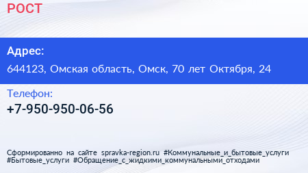 РОСТ по адресу 644123, Омская область, Омск, 70 лет Октября, 24 в дальнейшем Организация, размещена в следующих категориях: