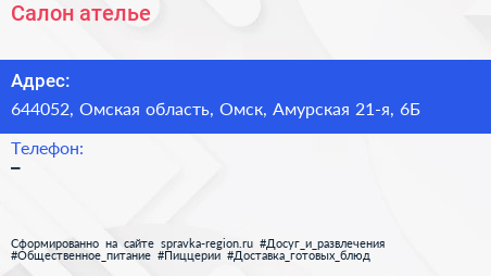 Салон-ателье по адресу 644052, Омская область, Омск, Амурская 21-я, 6Б в дальнейшем Организация, размещена в следующих категориях: