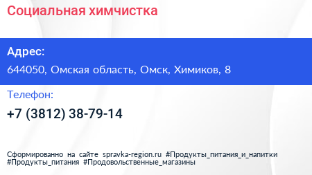 Социальная химчистка по адресу 644050, Омская область, Омск, Химиков, 8 в дальнейшем Организация, размещена в следующих категориях: