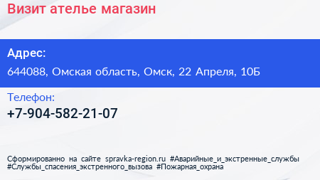 Визит, ателье-магазин по адресу 644088, Омская область, Омск, 22 Апреля, 10Б в дальнейшем Организация, размещена в следующих категориях: