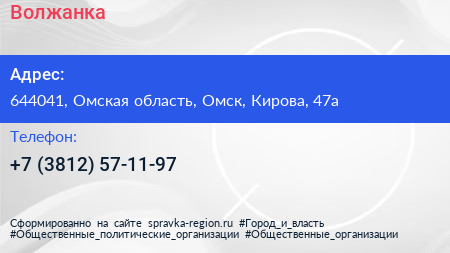 Волжанка по адресу 644041, Омская область, Омск, Кирова, 47а в дальнейшем Организация, размещена в следующих категориях: