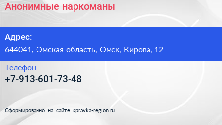 Анонимные наркоманы по адресу 644041, Омская область, Омск, Кирова, 12 в дальнейшем Организация, размещена в следующих категориях:
