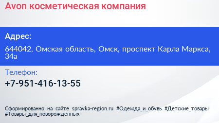 Avon, косметическая компания по адресу 644042, Омская область, Омск, проспект Карла Маркса, 34а в дальнейшем Организация, размещена в следующих категориях:
