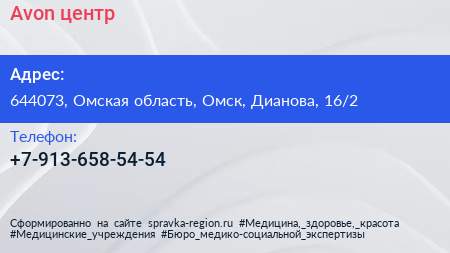 Avon, центр по адресу 644073, Омская область, Омск, Дианова, 16/2 в дальнейшем Организация, размещена в следующих категориях: