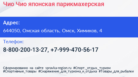 Чио Чио, японская парикмахерская по адресу 644050, Омская область, Омск, Химиков, 4 в дальнейшем Организация, размещена в следующих категориях: