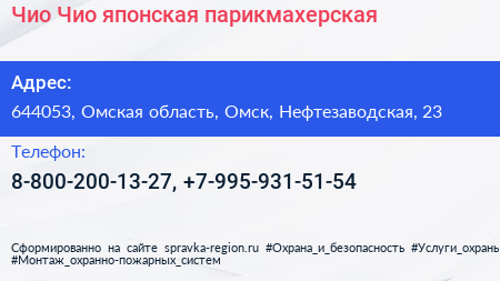 Чио Чио, японская парикмахерская по адресу 644053, Омская область, Омск, Нефтезаводская, 23 в дальнейшем Организация, размещена в следующих категориях: