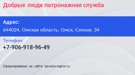 Добрые люди, патронажная служба по адресу 644024, Омская область, Омск, Сенная, 34 в дальнейшем Организация, размещена в следующих категориях: